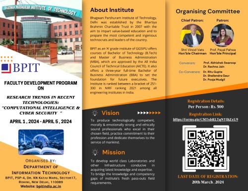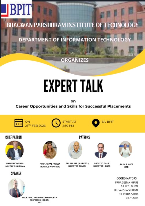 It gives me immense pleasure to welcome you to the web page of Department of Information Technology, Bhagwan Parshuram Institute of Technology. IT Department is one of the most vibrant academic departments in Bhagwan Parshuram Institute of Technology. The department offers B.Tech. in Information Technology having an intake of 180 students. The objective of the department is to create IT professionals who are able to handle any challenge in the field of Information Technology using latest technologies and provide innovative solutions to complex problems in any field.